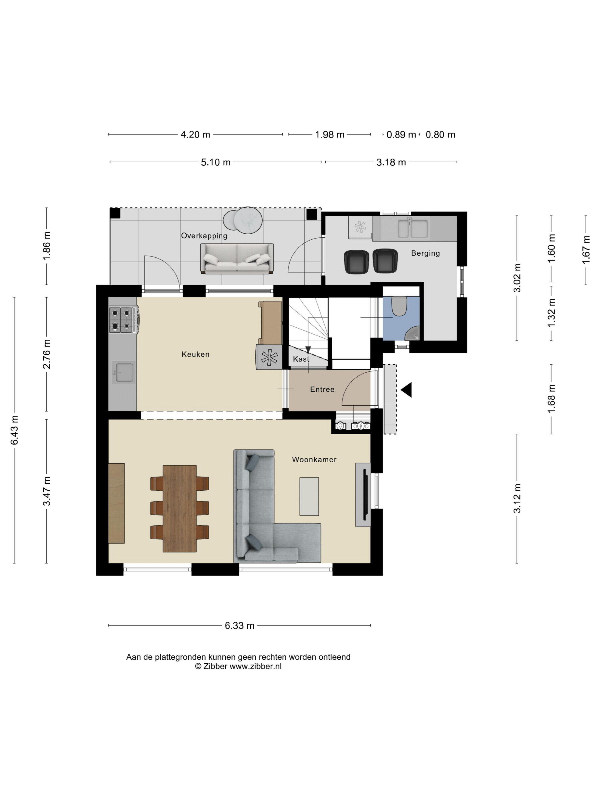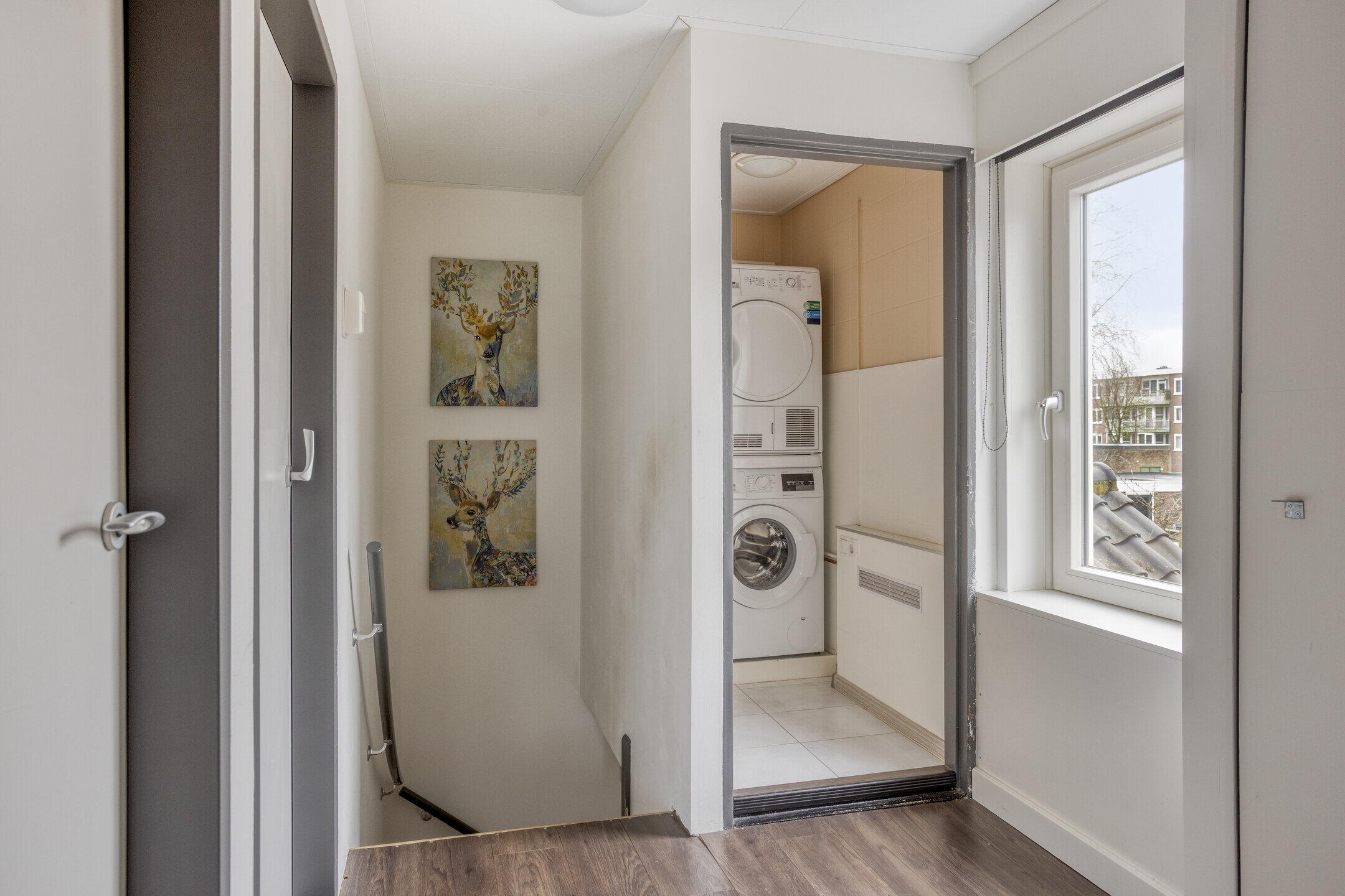 Via de fraai aangelegde voortuin bereik je de entree van de woning. Je stapt binnen in een nette en verzorgde hal die direct een prettige eerste indruk geeft. Hier bevindt zich de vaste trap naar de eerste verdieping. Daarnaast is er een apart toilet bij de berging – ideaal!