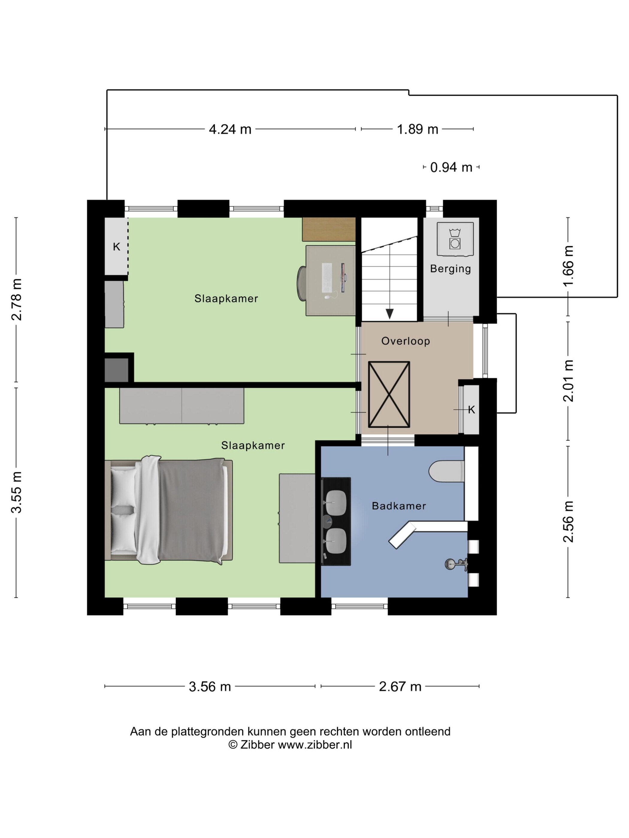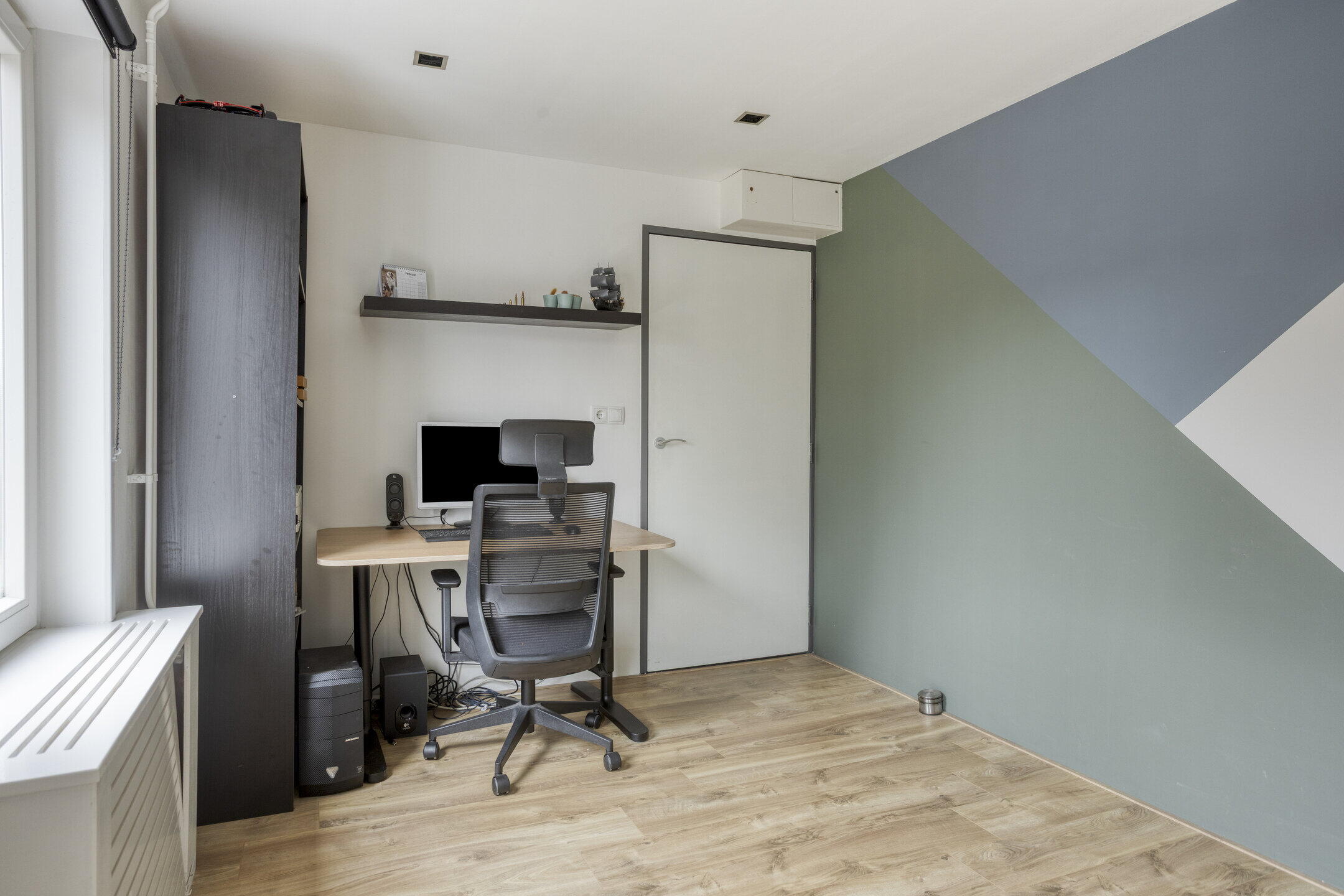 Op de eerste verdieping bevinden zich twee ruime slaapkamers. De master bedroom is royaal opgezet en biedt veel ruimte voor een kastenwand. De tweede slaapkamer is eveneens ruim en profiteert van een fijne lichtinval – perfect als kinder-, werk- of logeerkamer. Op de overloop vind je een handige berging met aansluitingen voor de wasmachine en droger. De moderne badkamer is strak en netjes afgewerkt en voorzien van een extra toilet, een dubbele wastafel met meubel en een ruime inloopdouche met praktische nisjes. Daarnaast beschikt de woning over een zolderverdieping die volop mogelijkheden biedt voor extra bergruimte of een eigen invulling.
