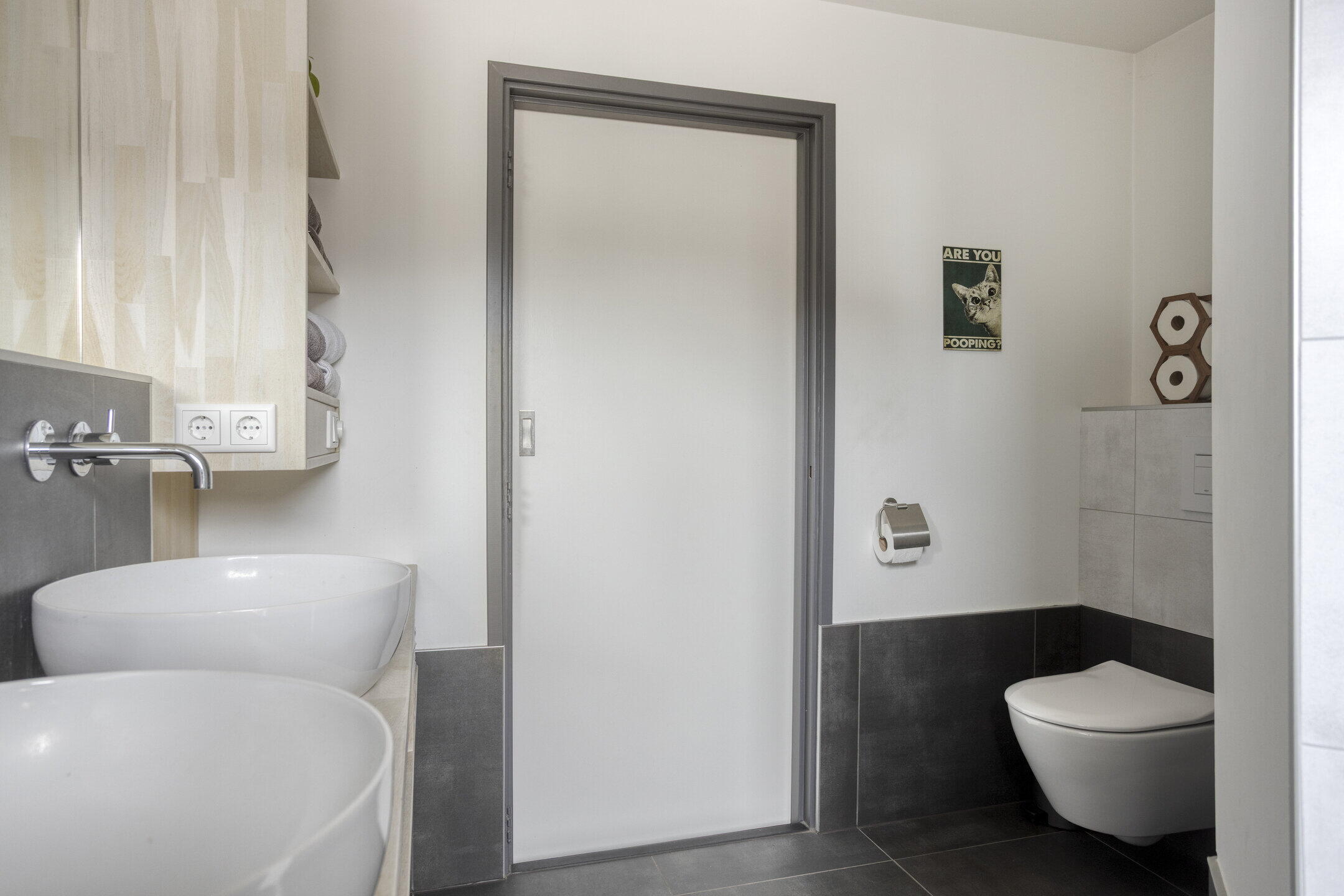 - Toilet, dubbele wastafel, wastafelmeubel, inloopdouche