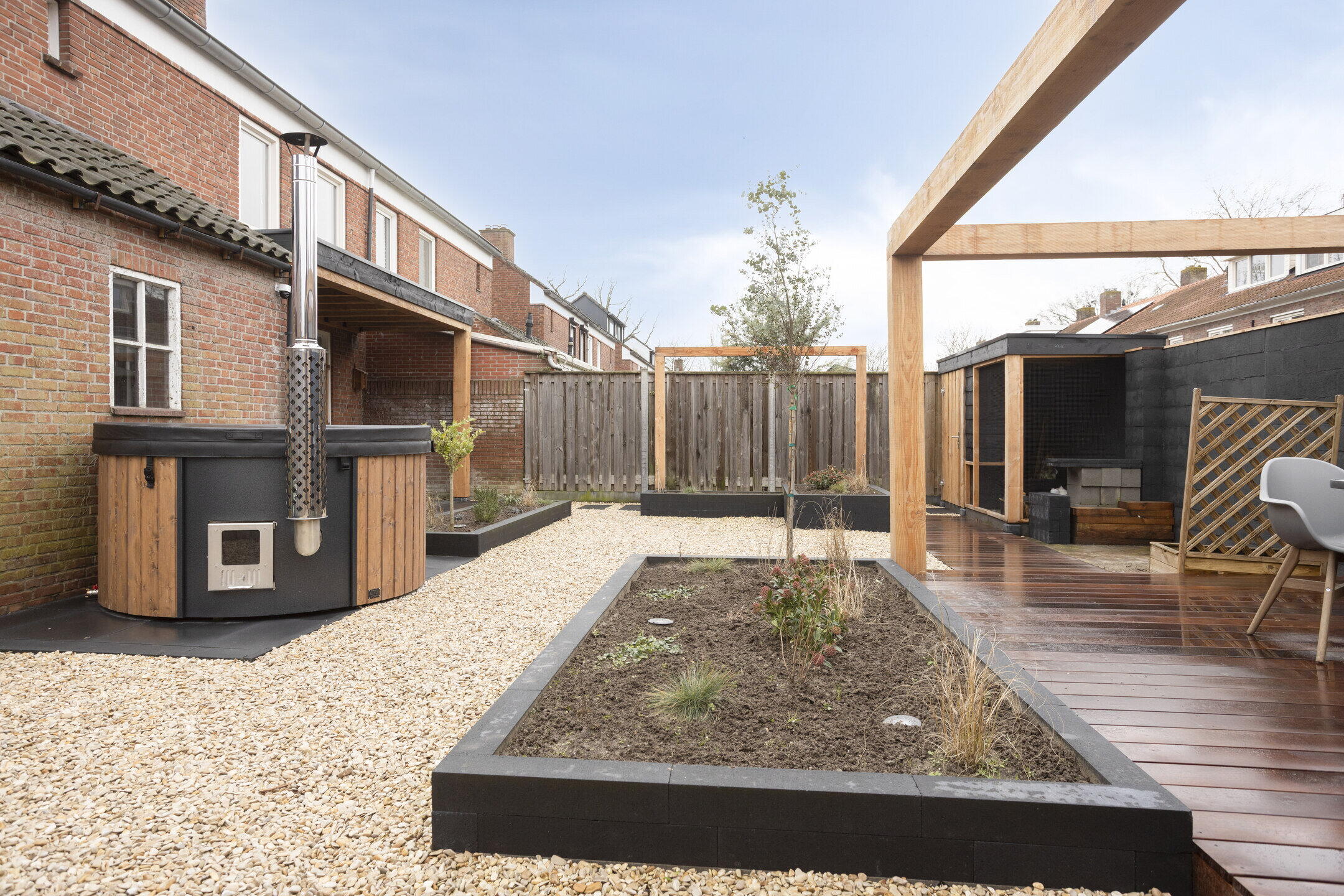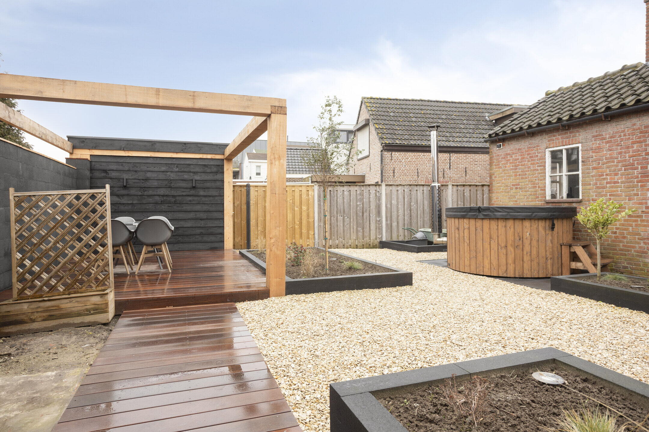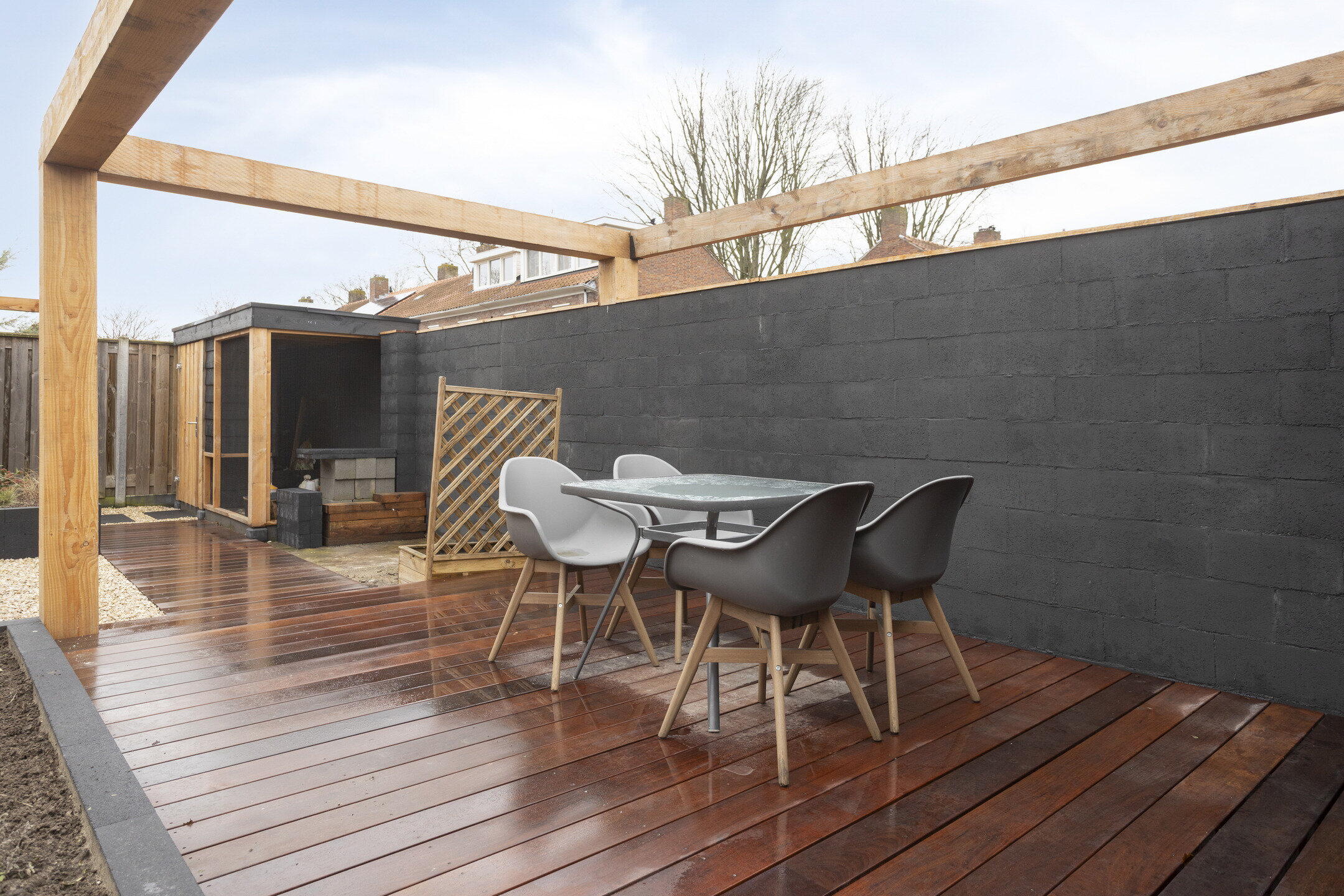 De achtertuin is netjes aangelegd en biedt volop mogelijkheden. Onder de overkapping is ruimte voor een heerlijke loungebank waar je tot in de late uurtjes kunt genieten. Achterin de tuin bevindt zich een vlonderterras met ruimte voor een (overdekt) terras. De tuin is ruim genoeg om je woonwensen verder uit te breiden – denk bijvoorbeeld aan het plaatsen van een hottub. Hier creëer je echt je eigen ontspanningsplek. Extra praktisch zijn de twee bergingen, ideaal voor fietsen, gereedschap of hobbyspullen. Daarnaast is er een volière aanwezig — perfect voor liefhebbers van vogels of als basis voor een andere creatieve invulling van de tuin.